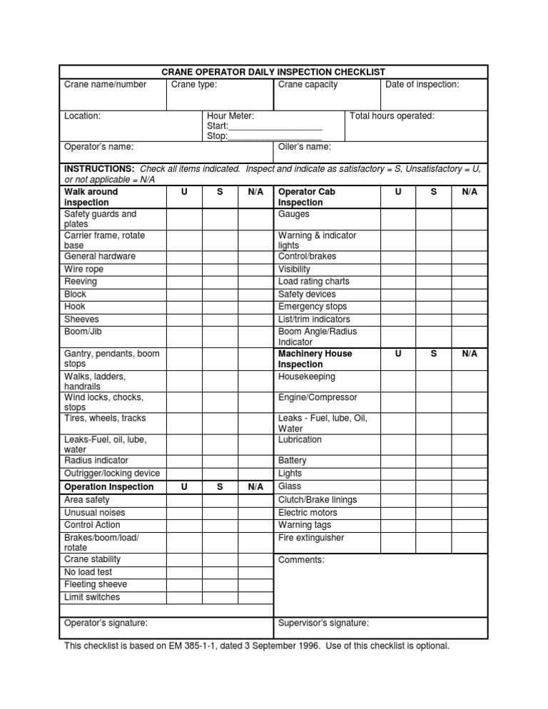 Aug 11, 2017 · general forklift safety: Forklifts should be inspected each day before use and operators can perform these simple, daily checks. Jul 10, 2021 · planning is essential for an effective inspection. Maintenance supervisors also handle personnel issues such as interviewing, hiring, and training maintenance workers. Dec 15, 2020 · tower crane inspection checklist (daily) use this daily crane inspection checklist template to inspect a tower crane before, during and after operational shifts.